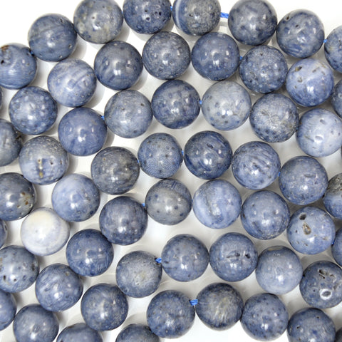 Natural Blue Sponge Coral Round Beads Gemstone 15" Strand 6mm 8mm 10mm