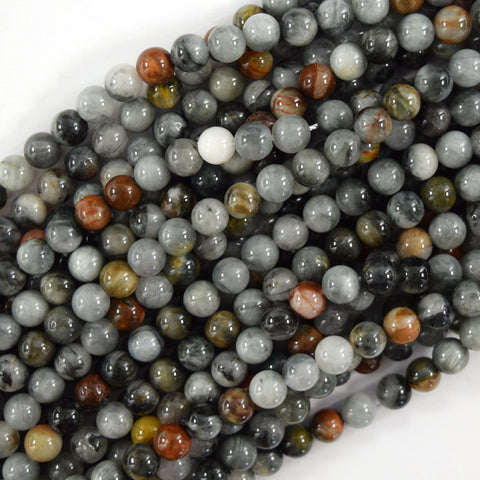 Natural Brown Gray Hawk Eye Round Beads 15.5" Strand Eagle Eye 6mm 8mm 10mm S3