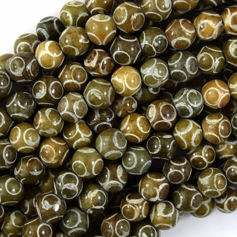 Natural Brown Jade Carved Round Beads Gemstone 15" Strand 8mm 10mm
