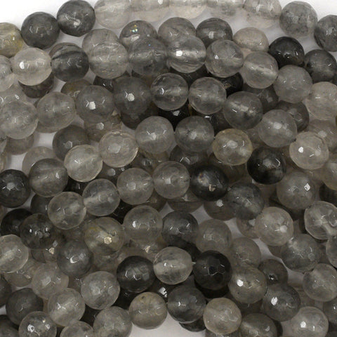 Natural Faceted Cloudy Gray Quartz Round Beads Gemstone 15" Strand 6mm 8mm 10mm