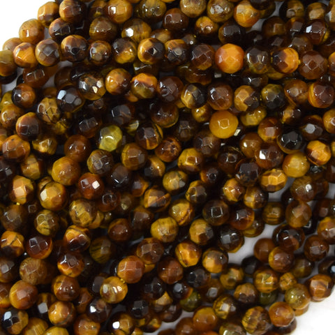 Natural Faceted Tiger Eye Round Beads Gemstone 14.5"Strand 4mm 6mm 8mm 10mm 12mm