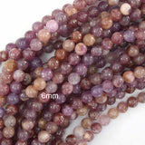 Natural Light Purple Lepidolite Round Beads 15.5" Strand 6mm 8mm S2