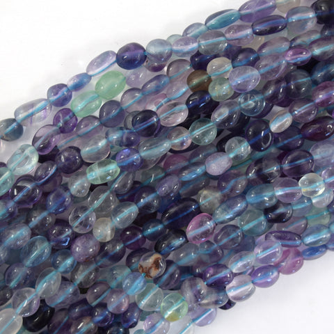 Natural Rainbow Fluorite Pebble Nugget Beads 15.5" Strand 6-8mm 7-9mm