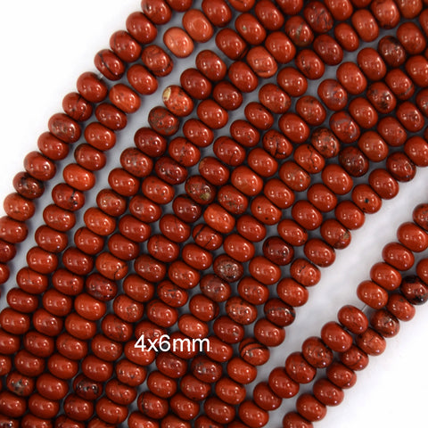 Natural Red Jasper Rondelle Button Beads 15" Strand 2x4mm 4x6mm 5x8mm