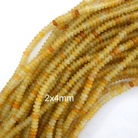 Natural Yellow Jade Rondelle Button Beads 15" Strand 4mm 6mm 8mm 10mm