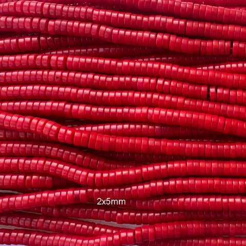 Red Coral Heishi Disc Beads Gemstone 16" Strand 4mm 5mm 6mm