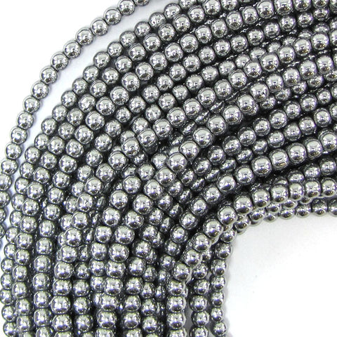 Silver Hematite Round Beads Gemstone 15" Strand 4mm 6mm 8mm 10mm